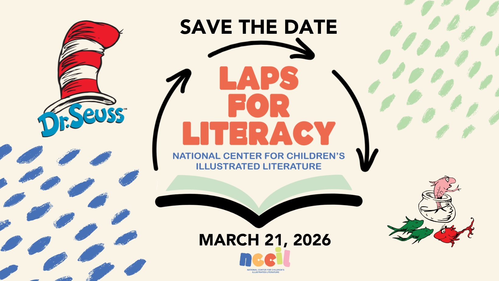 Save the date for our second annual Laps For Literacy where we get outside and walk downtown to help raise funds to promote children's literacy! This year's walk is Dr. Seuss themed and you will not want to miss the after party with family friendly games and activities! Watch for details to come soon and registration to open!